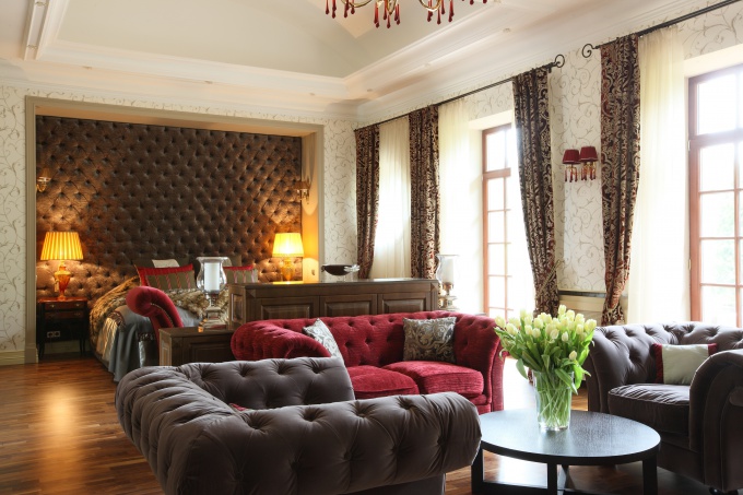Второй ряд – декоративный текстиль. Его украшают подхватами, кистями. Декоративные шторы не являются «рабочими», они зафиксированы и предназначены для того, чтобы подчеркнуть общую декоративную идею.