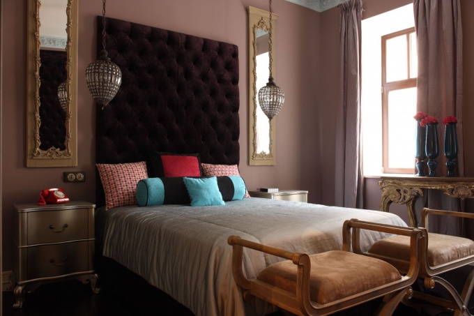 В оформлении спальни не следует применять более трех цветов. Полезно нанести несколько подходящих цветовых пятен и проследить, как цвет ведет себя при разном освещении, времени суток, погоду. В спальне как нигде мы чувствуем на себе воздействие цвета!