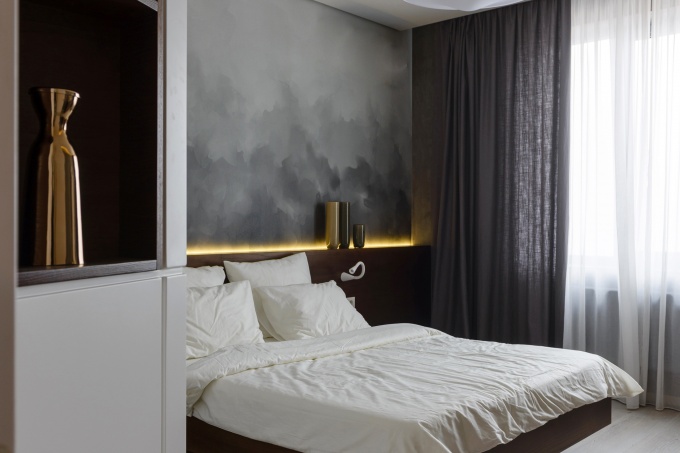 Главное, что отличает спальню – особый уют. Шторы, обои, свет – все это очень важно. Здесь вполне подойдет контурная, «затухающая» подсветка. Следует следить за устройством света, расположенного за спинкой кровати, он не должен мешать спящему, когда другой читает.