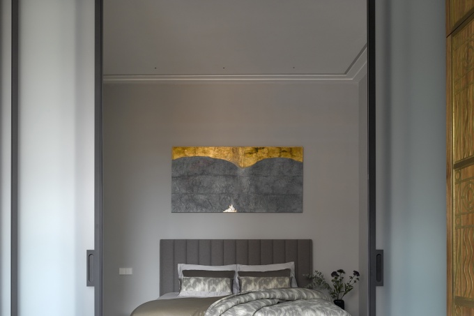 Спроектированная дизайнером Марселем Искандаровым квартира в Таганских переулках предназначена для композитора классической музыки и его супруги – яркой, творческой, хотя и немолодой пары. На первой встрече заказчики четко обозначили, что им нужен неоклассический буржуазный интерьер с элементами восточной, и в частности татарской, культуры. При этом они не стремились к прямым историческим цитатам, а хотели найти баланс между приметами разных культур в интерьере, а главное – наполнить квартиру теплотой и гармонией, которые будут вдохновлять на создание музыки.
