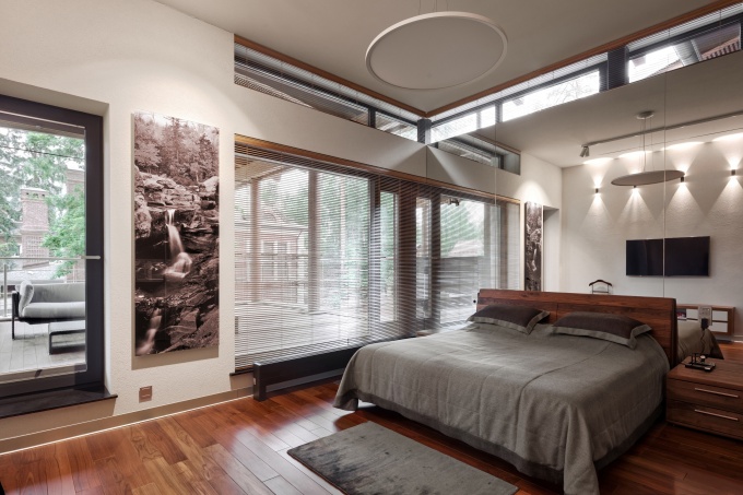 Слишком большой размер спальни может нарушить необходимую в этой зоне уединенность. Оптимальный размер спальной зоны колеблется от 25 кв.м до 40 кв.м.