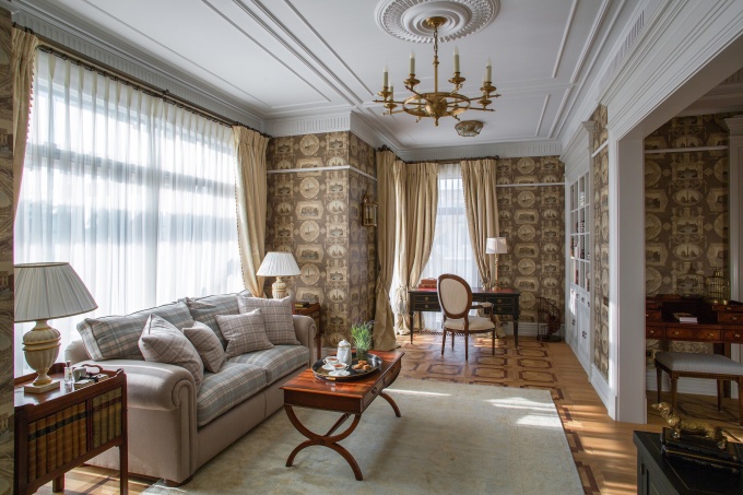 «Это не внесло никакого противоречия. Если покопаться в архивах, то схожесть английских викторианских интерьеров и российских усадеб конца ХIХ – начала ХХ веков просто удивляет… Поэтому наш антиквариат и предметы в стиле ретро вместе с изделиями российского производства, созданными на заказ, оказались чрезвычайно уместны. В конечном итоге получилось нечто российско-английское: интерьер плотный, подробный, цветной», - рассказывает автор проекта.