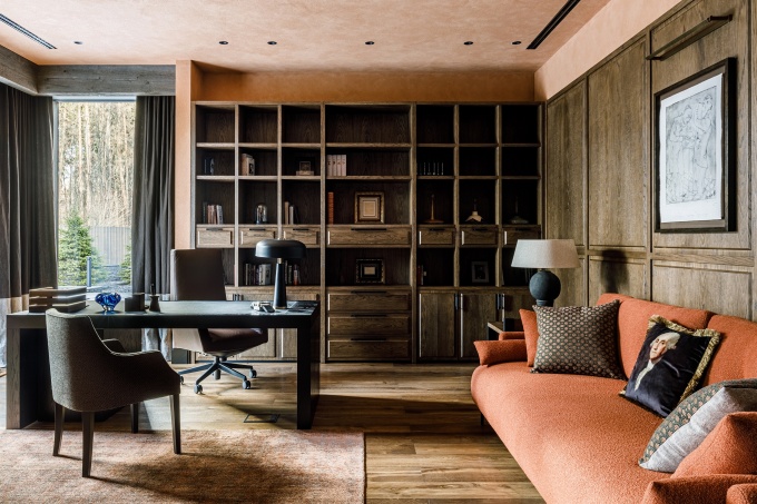 С заказчиками она знакома давно, неоднократно вместе работала и хорошо знает их вкусы и предпочтения. Задача стояла создать интерьер с теплой и гостеприимной атмосферой, отразить в деталях индивидуальность хозяев и наполнить пространство искусством. Заказчики обратились с уже готовым проектом дома: строительство уже активно шло, но они опасались, что современная архитектура сделает семейный дом слишком холодным. «Мы начали с самого начала. Полностью поменяли проект, внесли изменения в готовую планировку, «утеплили» и смягчили пространство и вывели на первый план натуральную фактуру дерева. Оставаясь верными минималистским фасадам, мы создали в интерьере настроение укутывающего уюта», - рассказывает автор проекта. Решения принимались быстро, работа шла буквально с листа, поэтому интерьер получился таким живым и волнующим.