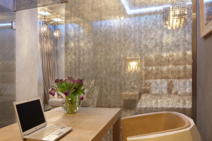 Гламур в некотором роде является современной интерпретацией дворцового стиля и арт-деко. Он превращает богатство в культ. Подчеркнутая вычурность стиля выглядит очень эффектно, она сразу же бросается в глаза и запоминается навсегда. При создании гламурных интерьеров используют исключительно дорогие эксклюзивные материалы: драгоценные металлы и камни, стразы, хрусталь, элитный текстиль, кожу, прочее. Если это правило игнорировать, заменяя материалы на более традиционные, то получится скорее пародия на гламур, которая неуместна в респектабельном доме. Ценителям лаконичных и простых интерьеров, стоит оформить кабинет в стиле кантри, ведь гламур покажется им слишком вызывающим. Экстравагантные интерьеры могут оценить только те люди, которые не представляют своей жизни без блеска, шика и ослепительного великолепия.