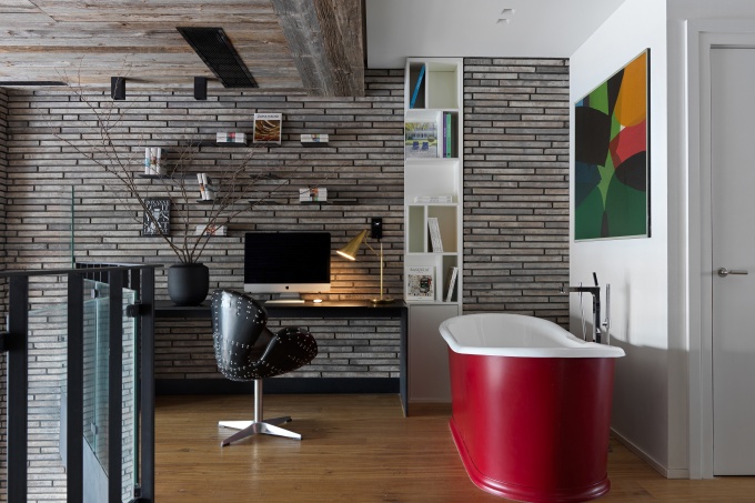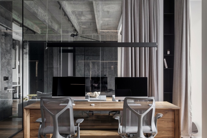 Темный кирпичный фасад, большие внутренние объемы, высокие окна и потолки и другие характерные элементы фабричной эстетики вдохновили на создание очень подробного фактурного интерьера, стилистику которого сами авторы определяют как городской фьюжн. Интерьер получился живым, с обволакивающей атмосферой и тактильными поверхностями, главное в нем – красота природных фактур и мастерское соединение брутализма и мягкости.