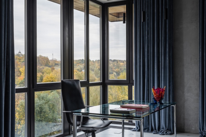 Детский блок имеет отдельный вход, а с родительскими апартаментами он соединяется винтовой лестницей, расположенной в кабинете. Над интерьерами всех четырех этажей работала команда INRE, ей удалось не только выдержать непростой объект в едином стиле, но и прекрасно отразить в нем личность заказчика и его взгляды на комфортное современное жилье. В итоге получился оригинальный и очень личностный проект с нетривиальной планировкой и дизайнерскими решениями.
