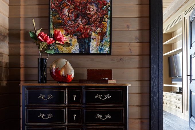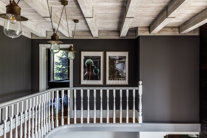 Заказчик приобрел двухэтажный дом площадью 600 кв. м со сложной архитектурой и стропильной системой кровли с деревянными балками. К дизайнерам бюро Art Group под руководством Дарьи Васильковой он обратился с пожеланием создать шале, и команда бюро, известная нестандартным подходом к дизайну, предложила свою интерпретацию традиционной альпийской постройки.