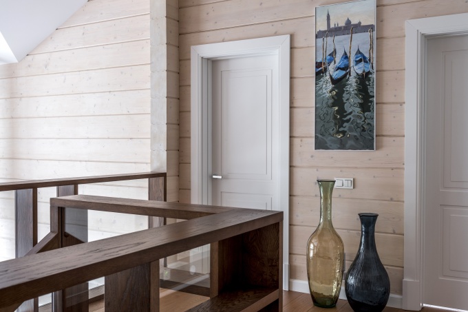 Заказчики этого дома и дизайнер Александра Афанасьева знают друг друга давно, поэтому, когда они приобрели готовый проект деревянного дома, то, не задумываясь, обратились к проверенному специалисту. Дом из клееного бруса был выбран не случайно: участок расположен вблизи Истринского водохранилища, кругом – первозданная природа: вода, небо, лес…