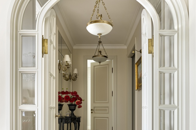 Дизайнер Дарья Сусекова создала парадный интерьер с историческим подтекстом: интересный, подробный, филигранно собранный. В нем гармонично соединяются элементы разных традиционных стилей: классики, барокко, шинуазри с современными дизайнерскими тенденциями. «Заказчица родом из Санкт-Петербурга, она много времени проводит в заграничных командировках. Париж, Милан, Санкт-Петербург – вот ее любимые города, классический антураж в них – норма жизни.