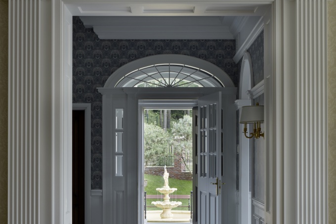 К оформлению стен классический стиль в интерьере коридоров также предъявляет свои требования. Светлые тона считаются наиболее предпочтительными. Чаще всего выбирается белая гамма. Однако применение бордового, изумрудного, лазуритового оттенков, отличающихся особым благородством, также допускается.