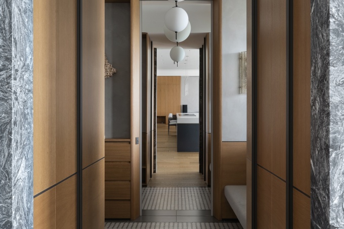 Характер квартиры во многом определила архитектура дореволюционного дома с неоклассическими фасадами, эркерами и впечатляющей входной группой с ордерным декором портала. Большие окна, высокие потолки, внушительная монументальность стен – все это так привлекает в московских дома с историей. И, хотя предыдущие владельцы организовали пространство в духе 1990-х годов, исходная структура позволяла спроектировать респектабельный и комфортный интерьер для молодой семьи – ценителей активного образа жизни, вечеринок, путешествий и вместе с тем тихого отдыха в кругу близких.