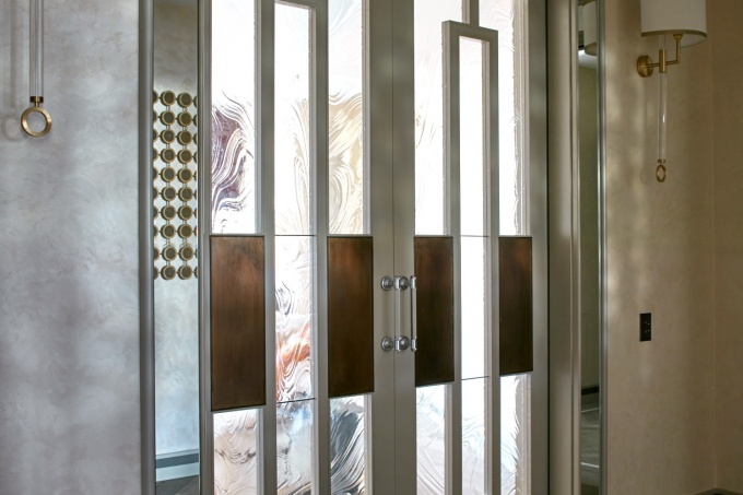 Архитекторы бюро «Дом-А» предложили сделать ставку на сложную светодиодную подсветку, эту идею заказчики восприняли с воодушевлением. Общая стилистика интерьера в процессе работы претерпела изменения: от жесткого минимализма до неоклассики с экстравагантной мебелью и светильниками фабрики Visionnaire.