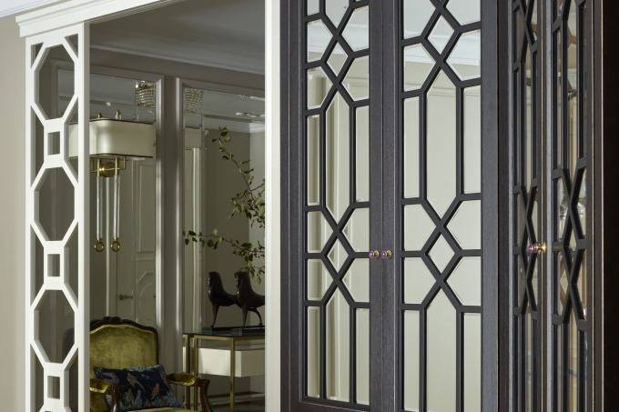 Квартира площадью 180 кв. м расположена в жилом комплексе «Резиденция на Суворовском» В Санкт-Петербурге. Ее владельцы – семейная пара с ребенком – обратилась к дизайнерам Андрею Юдину и Константину Новикову после того, как увидела их интерьер, созданный для знакомых. Заказчики метали об элегантной квартире с элементами классики, ар-деко и современности, с легкой атмосферой, мягкой цветовой палитрой, фактурой дерева и авторскими изделиями.