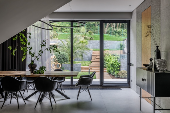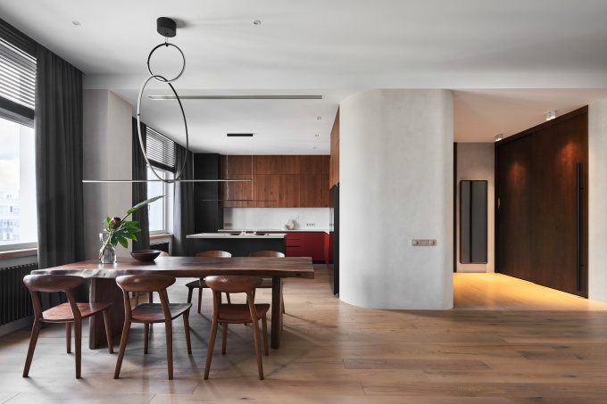На создание этого интерьера дизайнеров Кирилла и Анну Дунаевых («Бюро № 11») вдохновил пейзаж за окном. Квартира площадью 160 кв. м расположена на первом этаже нового жилого дома с современной архитектурой в Новосибирске. Ее панорамные окна выходят в лес, отчего создается ощущение, будто находишься в собственном доме или в удаленном от цивилизации эко-отеле.