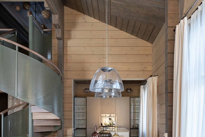 Сам дом построил удобный и экологичный – с большими окнами, которые дают много света и позволяют любоваться природным пейзажем из любого помещения, роскошным двухсветным пространством и компактной мансардой. «При разработке дизайн-проекта нам хотелось увязать интерьер с экстерьером, подчеркнуть простоту и ясность архитектурного облика постройки, а главное – подать материалы так, чтобы их фактуры и природная красота обнаруживались постепенно и создавали интересную и негромкую визуальную среду», - рассказывает автор проекта Екатерина Борисова-Шиян.