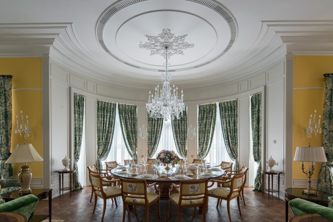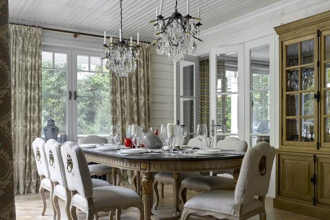«Это не внесло никакого противоречия. Если покопаться в архивах, то схожесть английских викторианских интерьеров и российских усадеб конца ХIХ – начала ХХ веков просто удивляет… Поэтому наш антиквариат и предметы в стиле ретро вместе с изделиями российского производства, созданными на заказ, оказались чрезвычайно уместны. В конечном итоге получилось нечто российско-английское: интерьер плотный, подробный, цветной», - рассказывает автор проекта.