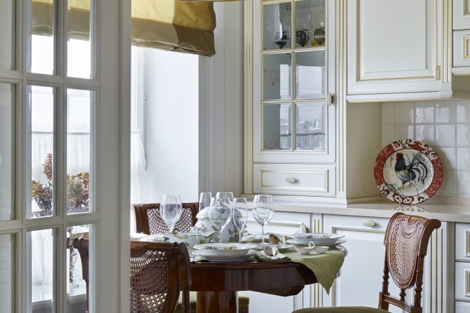 Архитекторы бюро «ND-Студия» оформили квартиру, придав ей черты старинного семейного дома, где живет история и есть ощущение размеренной жизни. В качестве основной стилистики была выбрана классика в английском и французском вариантах. Характерные для нее приемы позволили создать плотный по декору, многодельный интерьер с обилием изделий ручной работы и мельчайшей проработкой деталей.