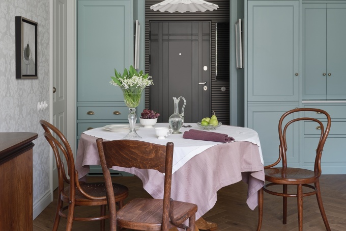 Для семейной пары с взрослой дочерью дизайнер Дарья Харитонова оформила квартиру в классическом стиле и наполнила ее цветом, столь необходимым в московском климате. «Речь о цветном интерьере зашла на первой же встрече; заказчица любит яркие акценты и смело их использует в одежде и аксессуарах, о зеленых стенах она заговорила сама. Я была рада столь вдохновляющему проекту, для меня работать с цветом – одно удовольствие», - отмечает дизайнер.