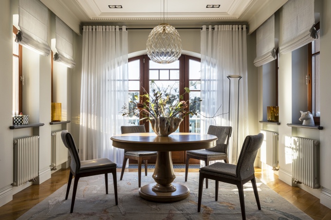 Дизайнеры Анна Анельгольм и Светлана Матвеева оформили дом в поселке «Довиль» и передали в его интерьере атмосферу престижного европейского курорта. «Нам хотелось создать ощущение безмятежности и покоя, добавить солнечный колорит и запах морского бриза – то, за что так ценится отдых на побережье», - отмечают дизайнеры. В распоряжение им достался четырехэтажный компактный дуплекс площадью 330 кв. м с архитектурой в духе традиционных фламандских построек: разноуровневой крышей, имитацией фахверка и богатым внешним декором.
