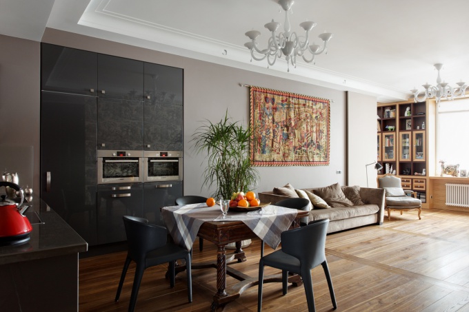 Для большой семьи с тремя детьми требовалось создать удобное жилье. Поскольку стиль загородного дом был выбран классический, то в оформлении квартиры заказчице хотелось чего-то более современного. В итоге получился эклектичный и очень комфортный для жизни интерьер с цитатами из разных стилей.