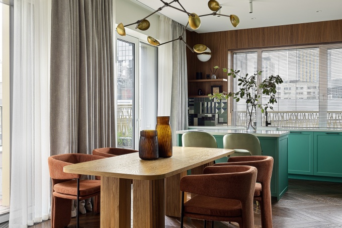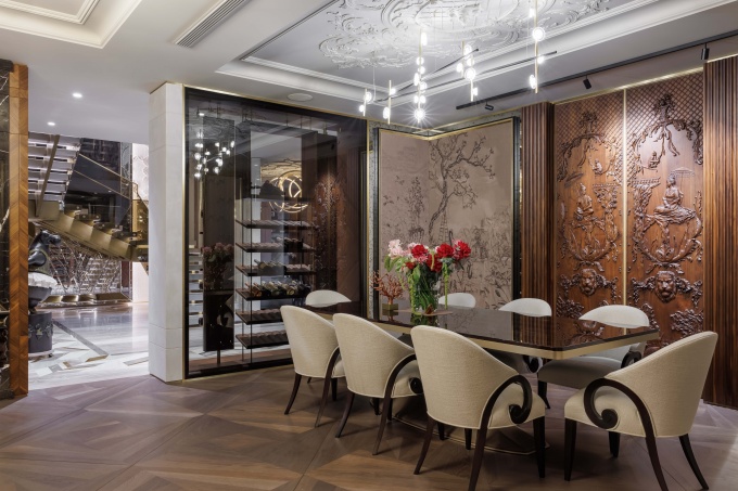 Двухэтажный пентхаус расположен на верхних этажах особняка и служит квинтэссенцией авторского подхода к работе с историческим наследием Санкт-Петербурга. Его яркую стилистику сами архитекторы называют «новая эклектика», в основе которой гармоничный сплав традиций и модернизма. «Это абсолютно авторский, стопроцентно персонализированный под заказчика интерьер, в котором каждый элемент индивидуально прорисован и создан вручную лучшими современными мастерами», - рассказывают авторы проекта.