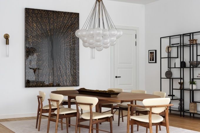 С заказчиками она знакома давно, неоднократно вместе работала и хорошо знает их вкусы и предпочтения. Задача стояла создать интерьер с теплой и гостеприимной атмосферой, отразить в деталях индивидуальность хозяев и наполнить пространство искусством. Заказчики обратились с уже готовым проектом дома: строительство уже активно шло, но они опасались, что современная архитектура сделает семейный дом слишком холодным. «Мы начали с самого начала. Полностью поменяли проект, внесли изменения в готовую планировку, «утеплили» и смягчили пространство и вывели на первый план натуральную фактуру дерева. Оставаясь верными минималистским фасадам, мы создали в интерьере настроение укутывающего уюта», - рассказывает автор проекта. Решения принимались быстро, работа шла буквально с листа, поэтому интерьер получился таким живым и волнующим.