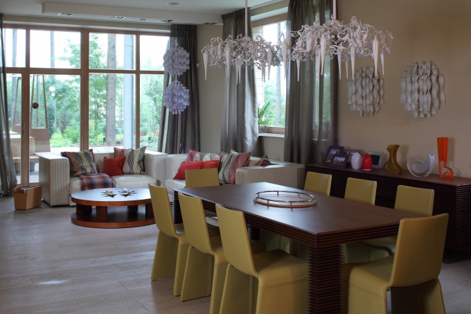 Поэтому перед архитекторами стояла задача создать не просто комфортный интерьер, ориентированный на природу, но сделать его нарядным и эффектным.