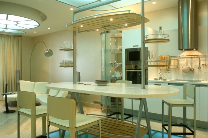Перед автором проекта стояла задача создать современный буржуазный интерьер, но без намека на минимализм. Чтобы придать интерьеру респектабельный вид, архитектор Влада Сулима предложила сделать уклон в стилистику ар-деко. За основу оформления была взята эстетика дорогих яхт.