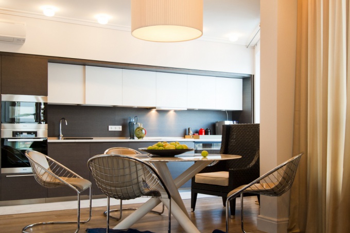 Небольшая квартира находится на тихой московской улице. Перед архитектором стояла задача четко ориентировать помещения квартиры по сторонам света (кухня должна была находиться на юге, спальня – на востоке, кабинет – на запале, гостиная – на севере). Цветовая гамма также была заранее определена заказчиком.