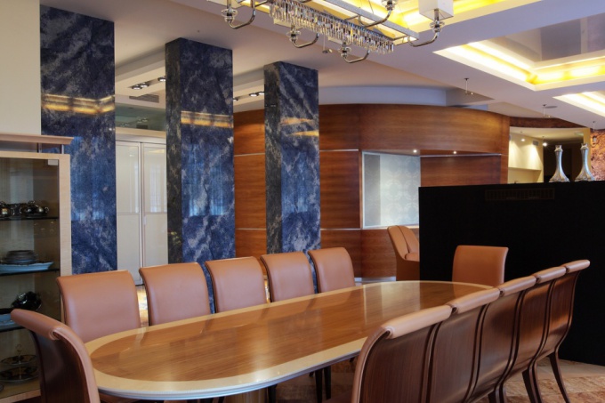 Заказчики обратились к архитекторам с предложением создать пышный роскошный интерьер с элементами помпезной классики. Облик интерьера определили лепной декор из гипса, сусальное золото, дорогие виды камня и резная мебель в духе барочной классики.