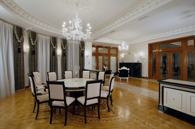 Поэтому архитекторам следовало предложить удобную организацию пространства, которая в конечном итоге определила и стилистическую направленность интерьера. Большие объемы, полукруглые стены, круговой холл – все это направило авторов проекта по пути ар-деко.
