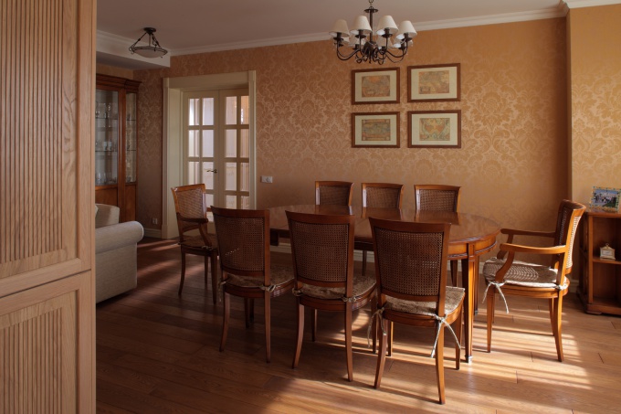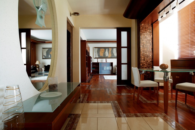 Квартира для пожилой семейной пары объединена из двух квартир. Заказчики хотели, чтобы их жилье было уютным, цветовую гамму они определили как охристо-золотую с обилием натурального дерева.