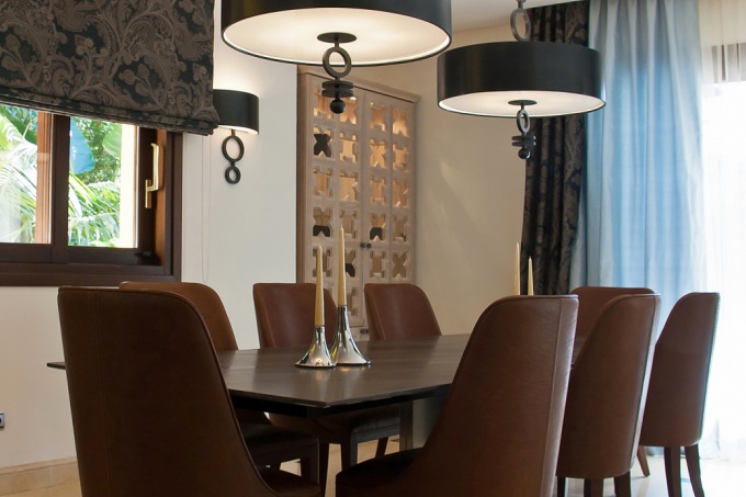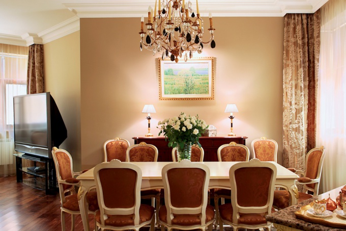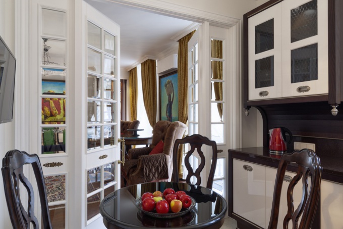 В дизайн-проекте современных апартаментов присутствуют черты колониального интерьера. Поскольку хозяева много путешествуют, то в интерьере своего жилья они хотели отразить богатство художественных и ремесленных традиций культур разных стран и народов. Поэтому здесь можно увидеть восточные ковры, французскую мебель, статуэтки из Китая, богемский хрусталь, чучело африканского крокодила.