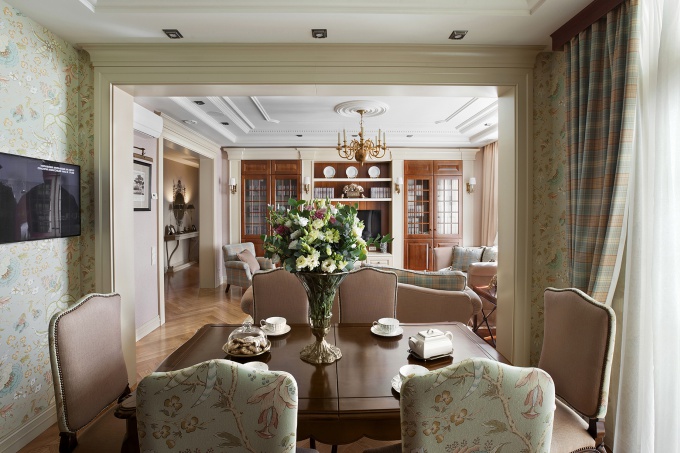 Как и подобает дворцовым интерьерам, ставка в дизайне проекта сделана на индивидуальные изделия, выполненные по авторским чертежам и эскизам, и дорогие материалы с богатыми фактурами. Важную роль играют аксессуары и текстиль, они завершают образ классического дворцового интерьера.