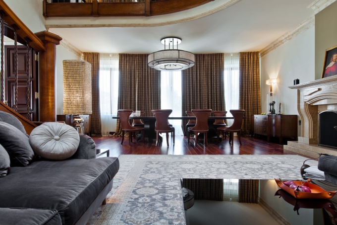 К работе над проектом большого статного особняка архитекторы Ольга Гончар и Софья Лобынцева подключились на стадии декорирования пространства, вслед за французскими архитекторами, спроектировавшими постройку. Серьезные конструктивные изменения в проект было вносить поздно (на полах везде уже лежал паркет из экзотического дерева), поэтому корректировать планировку пришлось исключительно декораторскими методами: с помощью расстановки мебели и четкого зонирования.