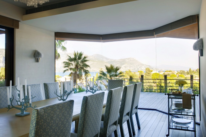 Для оформления его интерьеров был приглашен декоратор Кирилл Истомин, который увидел в вилле отсылки к Америке 1970х годов. А точнее к калифорнийским интерьерам Рейгана, оформленных Уильямом Хейнсом еще до того, как его владелец стал президентом США.