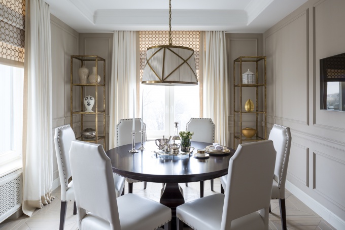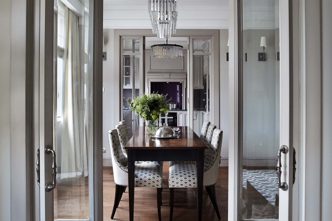 Прекрасный вид на Смольный собор и историческую панораму Санкт-Петербурга подсказали декоратору Полине Пидцан и декоративную идею, и планировочное решение этой трехкомнатной квартиры. Связь с парадной архитектурой города она поддержала с помощью элементов современной классики: элегантных и строгих. А расположение возле окна, откуда открываются наиболее выигрышные перспективы, столовой группы (заказчики очень любят принимать гостей!) определило структуру квартиры.