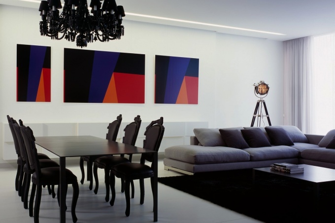 Бюро ub.design создало городской интерьер, где ставший визиткой архитекторов минимализм усложнен деталями в стиле ироничного барокко. Чистое свободное пространство с перетекающими зонами и стеклянными перегородками, исполненное в лаконичном черно-белом варианте, выглядит еще более современным за счет театрально-гротескной мебели и светильников.