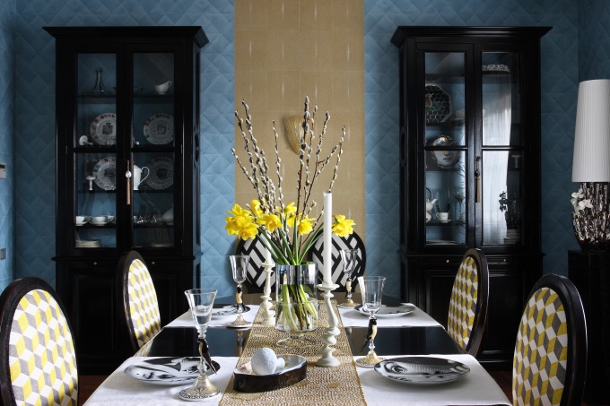 Для молодой семьи архитекторы Ирина Мавродиева и Артур Гога создали современный дом с элементами ар-деко. Ключом к его стилистике, цветовой гамме и общей эстетике стало декоративное художественное панно с изображением тюльпанов: изящный серебристо-перламутровый букет на темном шоколадном фоне.