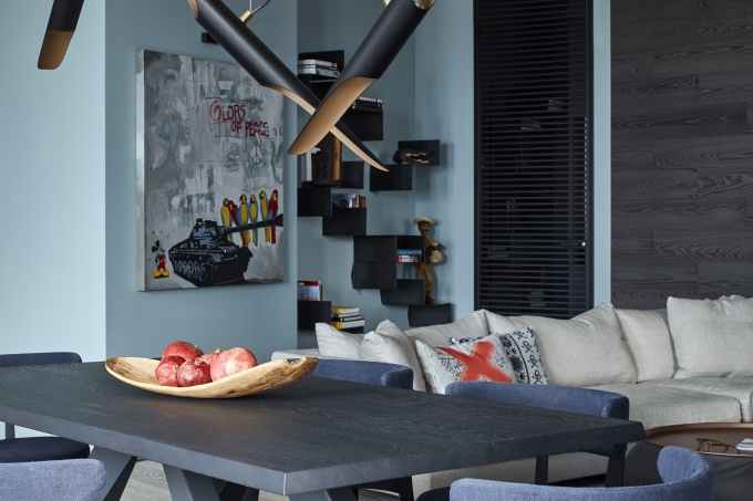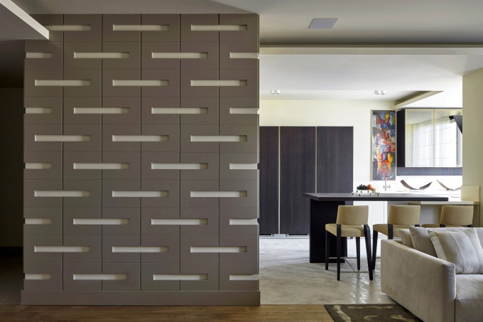 К оформлению квартиры площадью более 500 кв. метров заказчики подошли серьезно: они поставили задачу создать респектабельное и то же время динамичное пространство, которое могло бы меняться в зависимости от настроения, и провели тендер, в котором приняли участие несколько столичных архитектурных бюро.