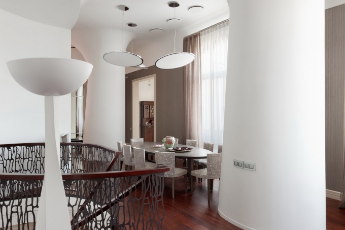 Артистичный интерьер трехуровневой квартиры на Береговой сложился как ответ на непростую исходную ситуацию и насыщенное задание на проектирование, которое исходило от заказчиков. Пространство с куполом изначально обладало непростыми параметрами: радиусная геометрия наружных стен, большие перепады высоты потолков (максимально до 4, 5 метров), необычная форма окон, изрезанная форма плана, обилие коммуникаций.