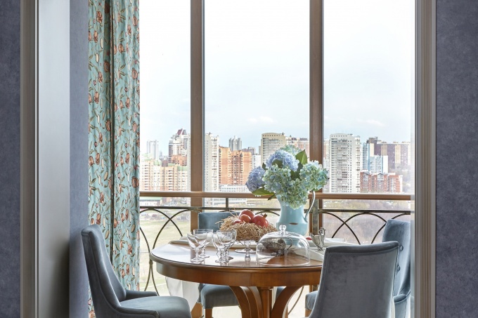 Заказчики мечтали о квартире с классическим антуражем, наполненной солнцем и яркими красками. Для архитекторов Татьяны Смирновой и Натальи Нестеренко это был первый опыт проектирования интерьера в классическом стиле. Использование насыщенной цветовой палитры постепенно вывело их на итальянскую тему, которая оказалась необычайно близка заказчикам и гармонично вписалась в пространство панорамной трехкомнатной квартиры в московской высотке.