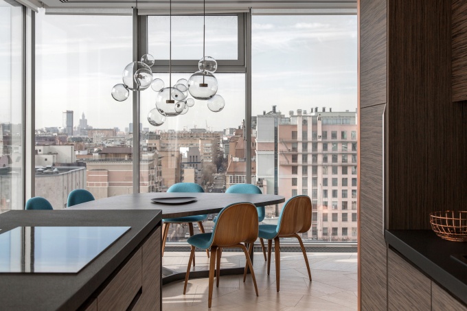 Интерьер этого московского пентхауса в высотке на Пироговке – ода столичной архитектуре, в которой история и современность сплелись столь тесно, что отделить их уже невозможно. Сити, Храм Христа Спасителя, Воробьевы горы, Новодевичий монастырь, крыши скромных сталинских домов здесь видны как на ладони. Сохранить этот потрясающий обзор, спроектировать жилое пространство, которое бы работало на городскую панораму, и стало задачей архитекторов бюро ub.design.