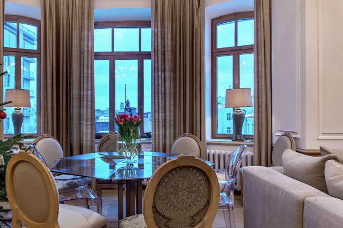 Но в процессе работы выяснилось, что замены требуют массивные деревянные двери, слишком помпезные паркетные полы, мебель и все остальное декоративное наполнение. «Когда мы приступили к реставрации лепнины и строители убрали лишнее, открылись исторические карнизы, лаконичные, с изумительной пластикой, прекрасно подчеркивающие высоту помещений. Оставили мы и родную печь, облицованную белой керамикой, - рассказывают авторы проекта. – В итоге интерьер стал больше соответствовать классической архитектуре здания, а проект, задуманный как легкая смена декораций, превратился в масштабную реконструкцию, которую мы завершили в рекордный срок – 71 день!»