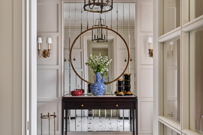 Они хотели эстетичную и функциональную квартиру в приятной светлой гамме, со скрытыми системами хранения и качественной мебелью. Предметы должны были выглядеть красиво не только снаружи, но и внутри: внутренняя отделка шкафов, фурнитура, скрытые элементы – все на высшем уровне. Так родилась идея современной американской классики со свойственными ей красивой архитектурой, респектабельностью и сдержанной элегантностью в деталях. Подбором искусства в проект занималась арт-консультант Наталья Елисеева.