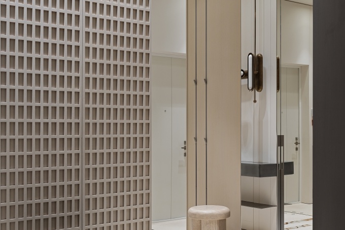 Заказчик – топ-менеджер финтехкомпании, интересуется последними техническими достижениями, его супруга увлекается современным искусством, а сын-тинэйджер занимается киберспортом. Все вместе они хотели современную и «продвинутую» квартиру с качественными материалами, эффектными деталями, но без китча. На облик интерьера во многом повлияло расположение дома и панорамные виды из окон на приватный парк с одной стороны и на магистраль с перспективой высоток с другой. Сдержанная природная палитра и урбанистические акценты стали основой декоративного решения пространства.