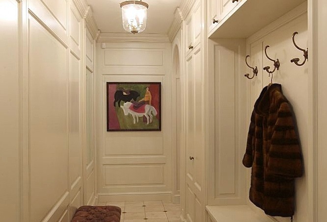 Правильно разделить это пространство на прихожую и холл, откуда расходятся все пути передвижения в интерьере. Я советую предусмотреть так же не один, а два гардеробных отсека – один сезонный и видовой, являющийся частью интерьера, другой – технический. В нем можно хранить остальную одежду.