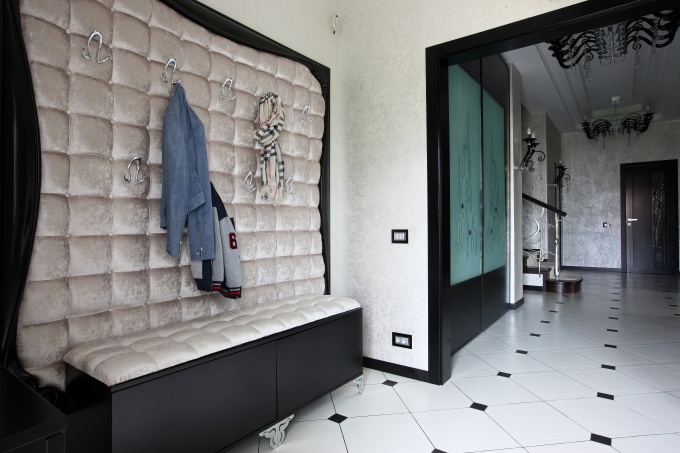 Чаще всего входную зону оформляют покрасками, декоративными штукатурками или обоями. Но она может быть решена абсолютно в любом материале: и в дереве, и в текстиле, и керамике и в коже.