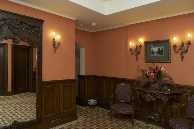 В оформлении этой зоны - собирательного образа дома, правильно использовать акцентные, самые эффектные приемы декорирования. Например, мозаичные панно, лепнину, авторскую мебель... Важно определить и центральный элемент, который акцентирует и удерживает внимание.