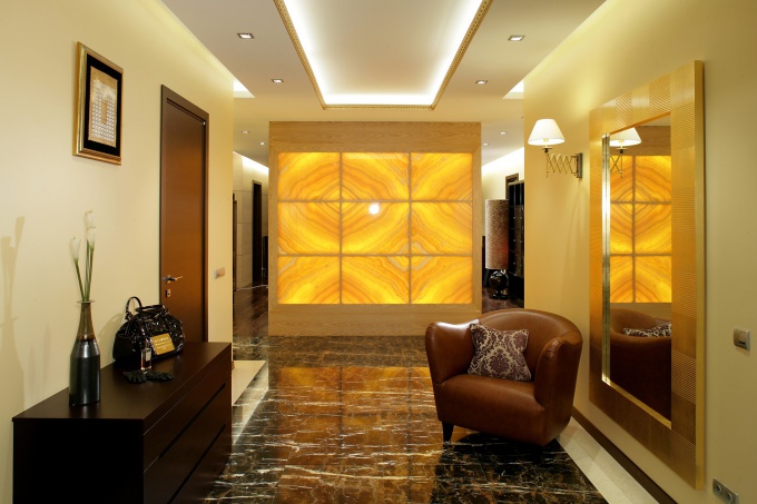 Освещение входной зоны, если это своего рода буфер между гардеробом и холлом или главной частью дома, может быть загадочным и таинственным. Такой ход интригует и дает возможность поразмышлять о развитии интерьера остальных помещений.
